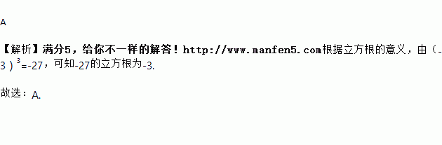 实数﹣27的立方根是( )