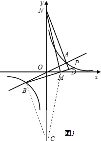 (3)如图3,点P是第一象限双曲线上的一动点,AD⊥BP于D点,交y轴于N点,BP交x轴于M点,连MN,试探究BM,AN,MN这三条线段之间有何等量关系,证明你的结论.