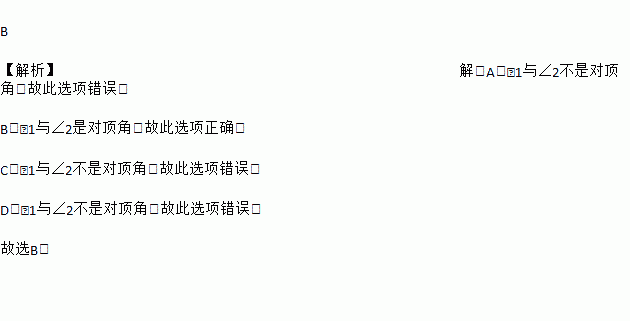 下列图形中与互为对顶角的是( )