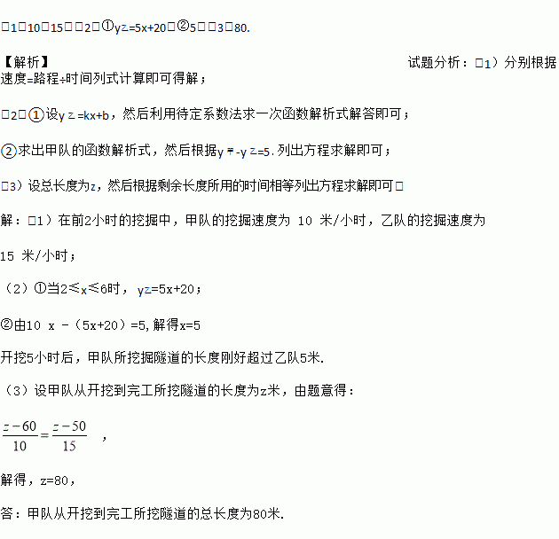 ②开挖几小时后,甲队所挖掘隧道的长度刚好超过乙队5米?