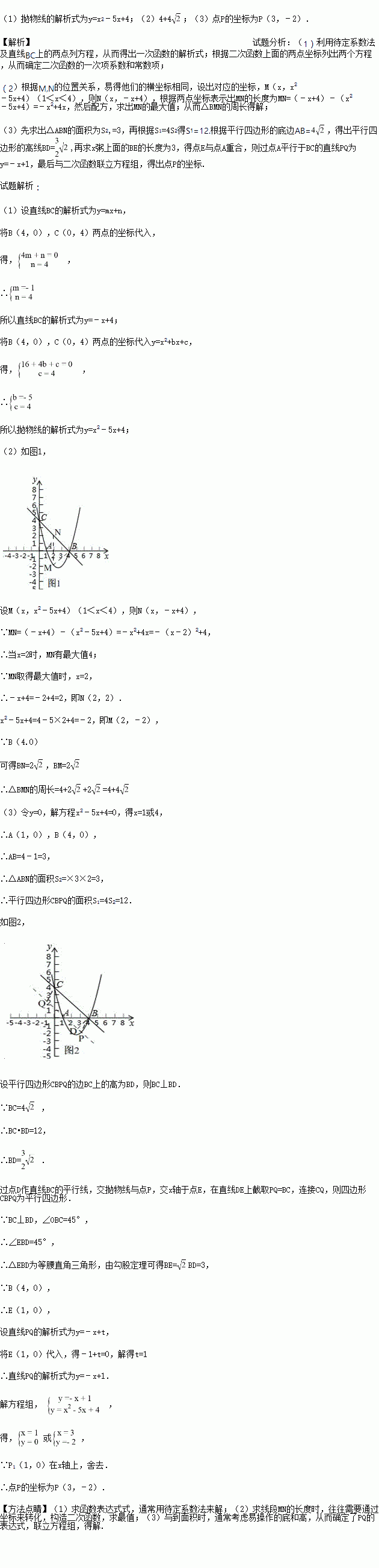 (3)在(2)的条件下,MN取得最大值时,若点P是抛物线在x轴下方图象上任意一点,以BC为边作平行四边形CBPQ,设平行四边形CBPQ的面积为S1,△ABN的面积为S2,且S1=4S2,求点P的坐标.