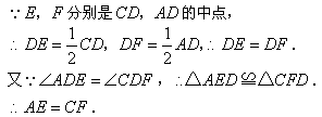 如图,已知四边形ABCD是菱形,点E,F分别是边CD,AD的中点.求证:AE=CF.