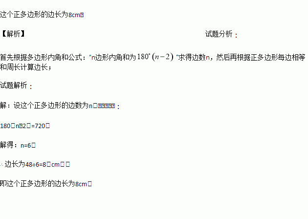 若一个正多边形的周长为48cm,且它的内角和为720°,求这个正多边形的边长.