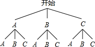 点评:此题考查的是用列表法或画树状图法求概率.注意列表法或画树状图法可以不重复不遗漏的列出所有可能的结果,列表法适合于两步完成的事件,树状图法适合两步或两步以上完成的事件.注意概率=所求情况数与总情况数之比.