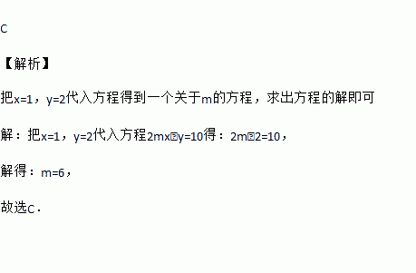 已知是方程2mx﹣y=10的解,则m的值为