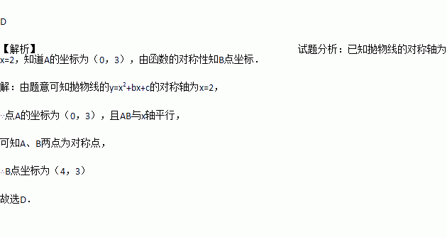 如图,已知抛物线y=x2+bx+c的对称轴为x=2,点A,B均在抛物线上,且AB与x轴平行,其中点A的坐标为(0,3),则点B的坐标为()