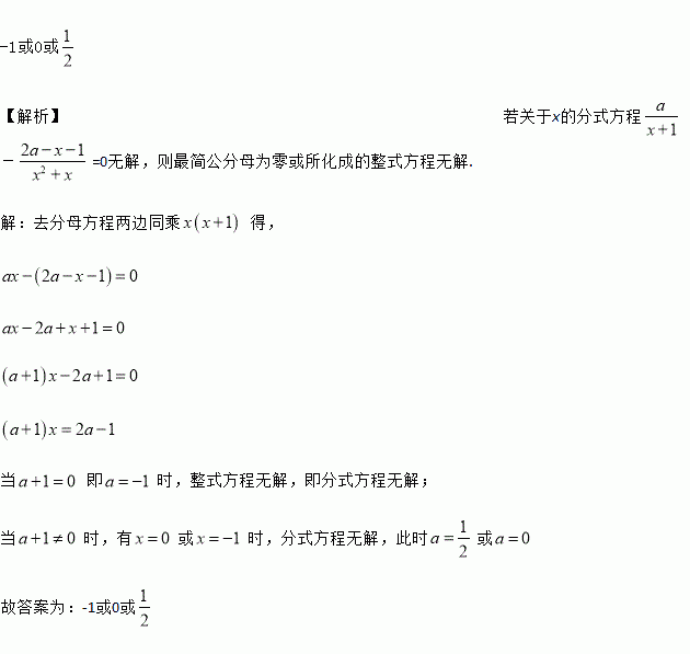 已知关于x的分式方程-=0无解,则a的值为____________.