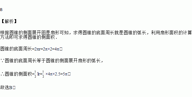 一把大遮阳伞,伞面撑开时可近似地看成是圆锥形,如图,它的母线长是2.5米,底面半径为2米,则做成这把遮阳伞需要布料的面积是( )平方米(接缝不计).
