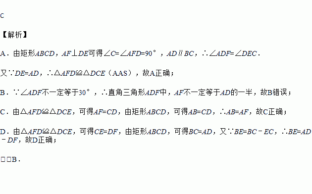 如图,在矩形ABCD中(AD>AB),点E是BC上一点,且DE=DA,AF⊥DE,垂足为点F,在下列结论中,不一定正确的是( )