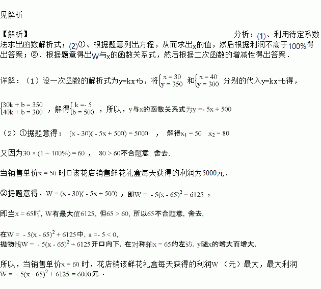 (2)物价局要求,销售该鲜花礼盒获得的利润不得高于100﹪: