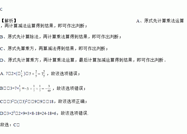 C. -32-(-3)2=-9-9=-18 D. 3×23-2×9=3×6-18=0