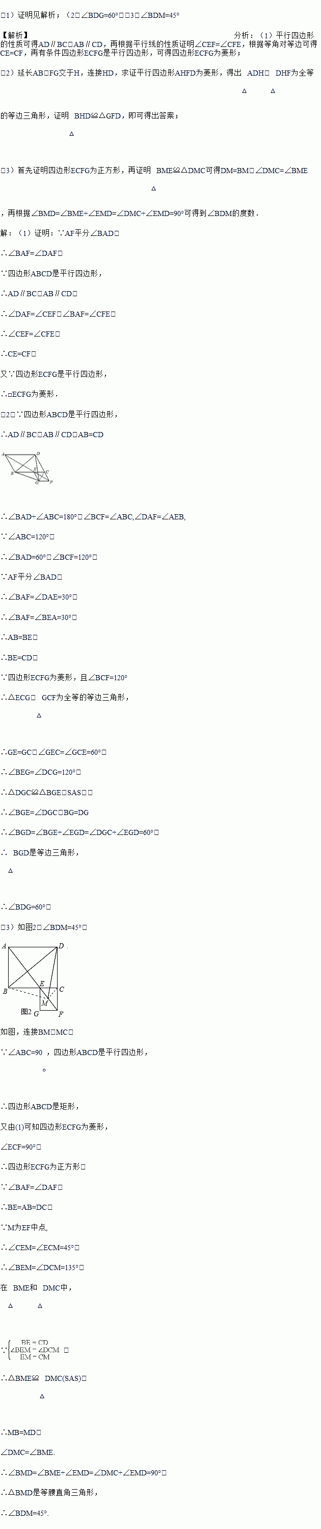 (2)如图2,若∠ABC=120°,连接BG、CG,求证△DGC≌△BGE,并求出∠BDG的度数;