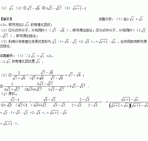 (2)分母有理化:分母有理化又称“有理化分母”,也就是把分母中的根号化去.指的是如果代数式中分母有根号,那么通常将分子、分母同乘以分母的有理化因式,达到化去分母中根号的目的.如: