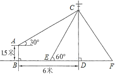 如图,在电线杆上的C处引拉线CE、CF固定电线杆,拉线CE和地面成60°角,在离电线杆6米的B处安置测角仪,在A处测得电线杆上C处的仰角为30°,已知测角仪高AB为1.5米,求拉线CE的长(结果保留根号).