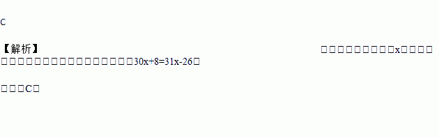 A. 30x﹣8=31x﹣26 B. 30x + 8=31x+26