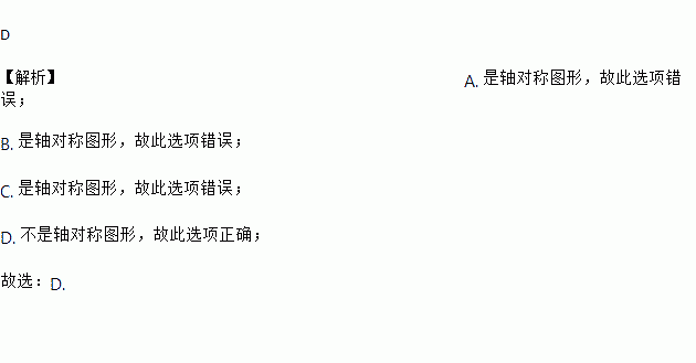 第24届冬季奥林匹克运动会,将于2022年02月04日~2022年02月20日在中华人民共和国北京市和张家口市联合举行.在会徽的图案设计中,设计者常常利用对称性进行设计,下列四个图案是历届会徽图案上的一部份图形,其中不是轴对称图形的是( )