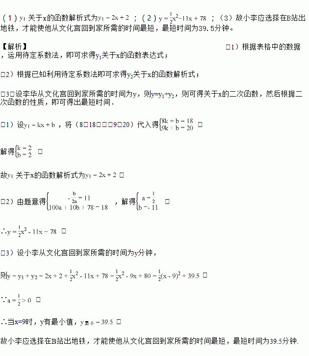(3)试求李华应选择在哪一站出地铁,才能使他从文化宫回到家所需的总时间最短?并求出最短时间(其他环节时间忽略不计)