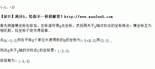在平面直角坐标系中,将点A(﹣5,﹣3)向右平移8个单位长度得到点B,则点B关于y轴的对称点C的坐标是_____.
