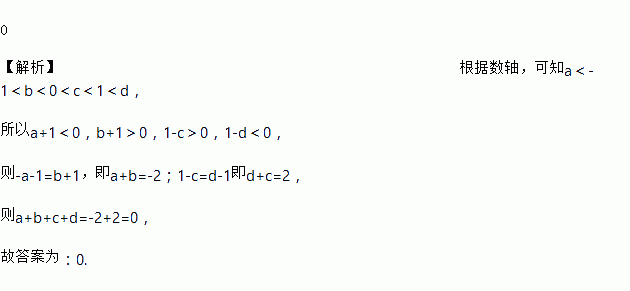 如图,若|a+1|=|b+1|,|1﹣c|=|1﹣d|,则a+b+c+d=_____.