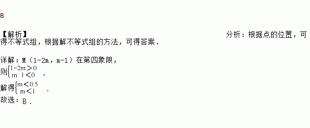 已知点M(1-2m,m-1)在第四象限,则m的取值范围在数轴上表示正确的是( )