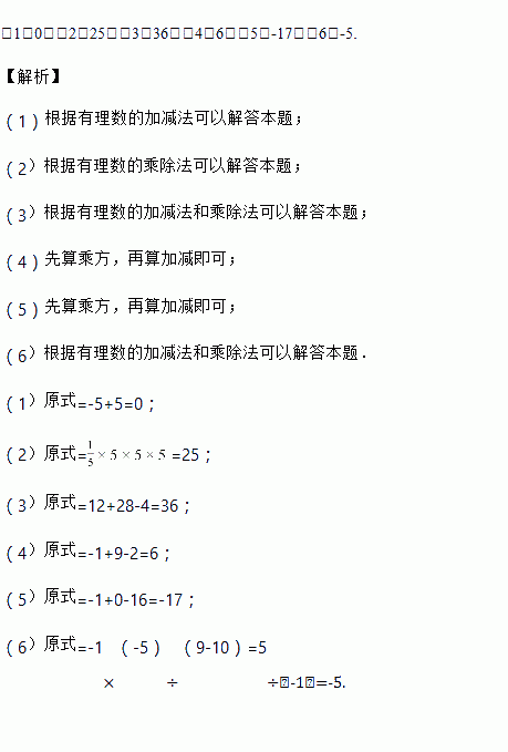 (6)(-1)5×(-5)÷[(-3)2+2×(-5)].