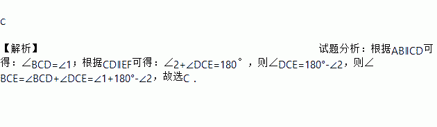 如图,如果AB∥CD,CD∥EF,那么∠BCE等于( )
