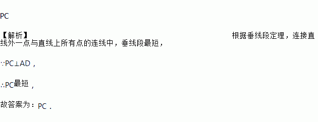 如右图,想在河堤两岸搭建一座桥,图中四种搭建方式PA,PB,PC,PD中,最短的是__________.