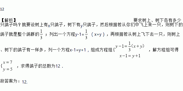 ;若从树上飞下去一只,则树上,树下的鸽子数一样多.”你知道树上树下共有______只.