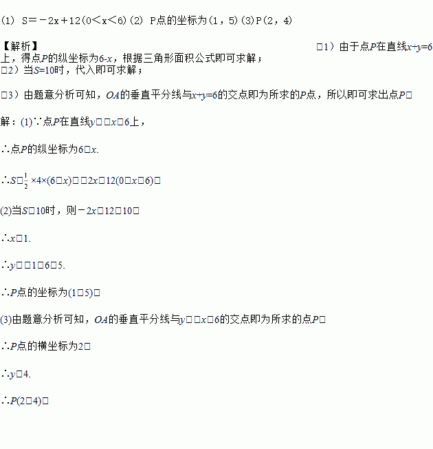 (3)在直线y=-x+6上求一点P,使△POA是以OA为底边的等腰三角形.