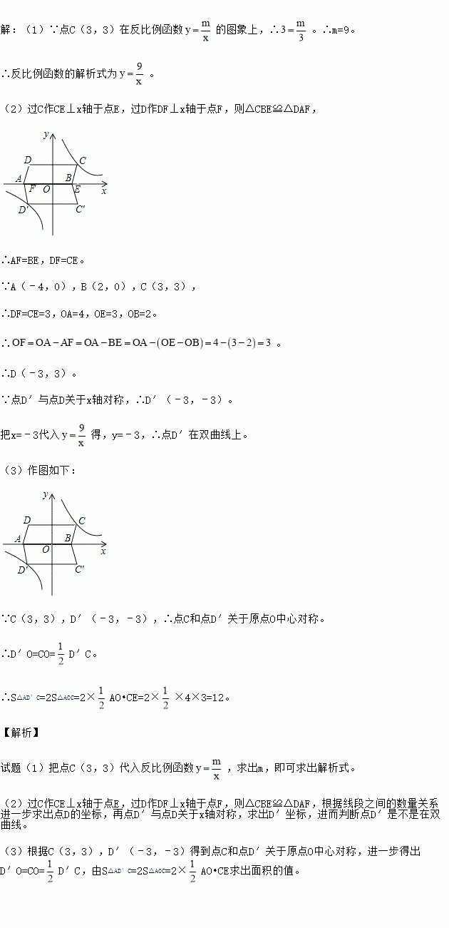 平行四边形ABCD在平面直角坐标系中的位置如图所示,其中A(﹣4,0),B(2,0),C(3,3)反比例函数
