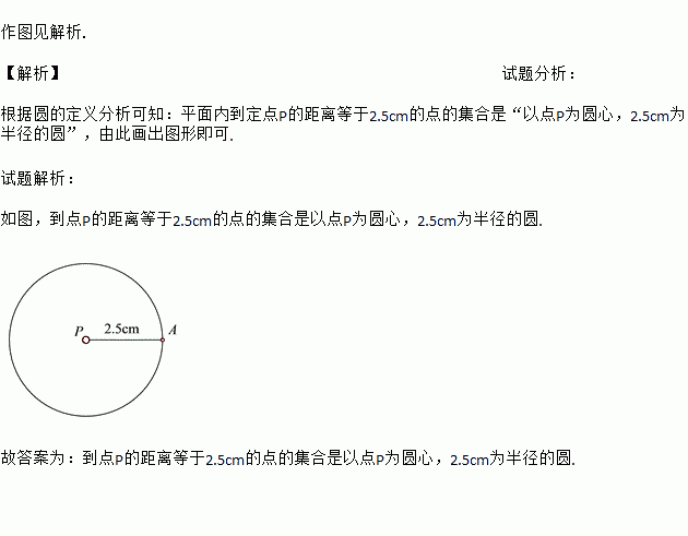 如图,试表示到点P的距离等于2.5cm的点的集合.