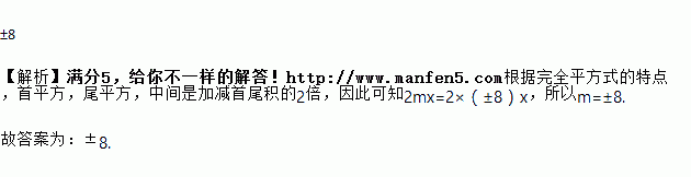 多项式x2+2mx+64是完全平方式,则m= ________ .