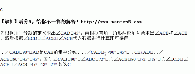 在直角三角形中,,,是的角平分线,交边于点,过点作中边上的高线,则的度数为( )