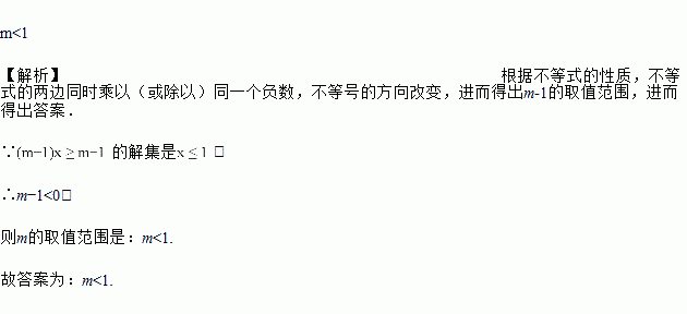 若(m﹣1)x≥m﹣1的解集是x≤1,则m的取值范围是________ .