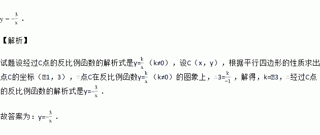 如图,A(4,0),B(3,3),以AO,AB为边作平行四边形OABC,则经过C点的反比例函数的表达式为_______.