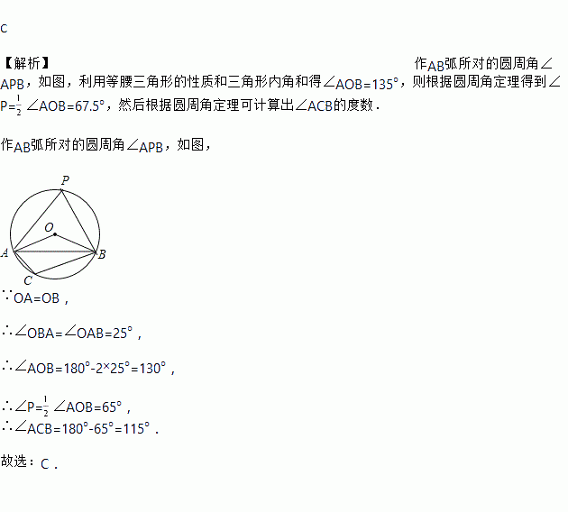 如图,在⊙O中,已知∠OAB=25°,则∠C的度数为( )