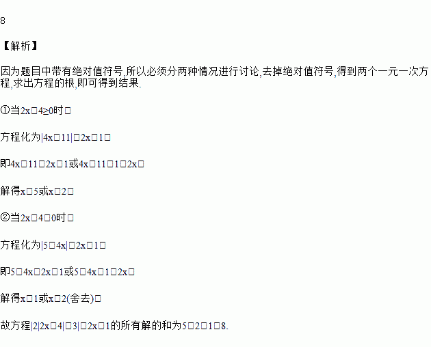 满足方程|2|2x-4|-3|=2x-1的所有解的和为多少?