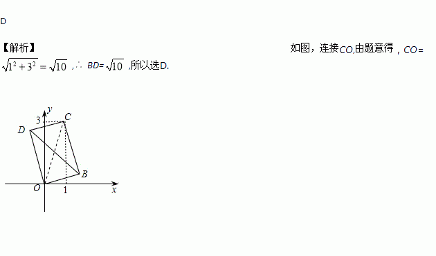 如图,矩形OBCD的顶点C的坐标为(1,3),则对角线BD的长等于( )