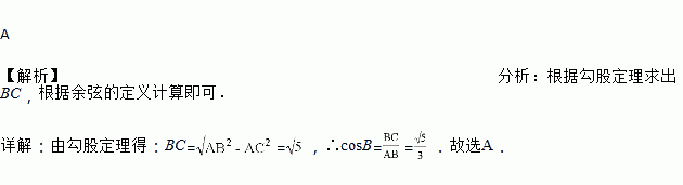 如图,在Rt△ABC中,∠C=90°,AB=3,AC=2,则cosB的值为( )