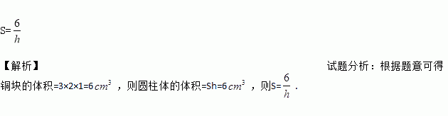 把一个长、宽、高分别为3cm、2cm、1cm的长方体铜块铸成一个圆柱体铜块,则该圆柱体铜块的底面积S(cm2)与高h(cm)之间的函数关系式为________.