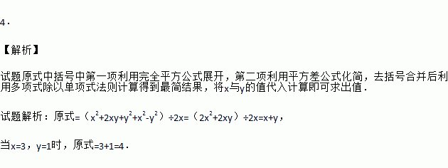 先化简,再求值:[(x﹣y)2+(x+y)(x﹣y)]÷2x,其中x=3,y=1.