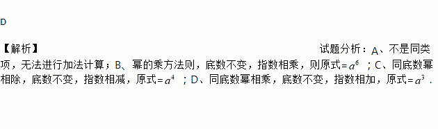 A. a2+2a3=3a5 B. (a2)3=a5 C. a6÷a2=a3 D. a·a2=a3