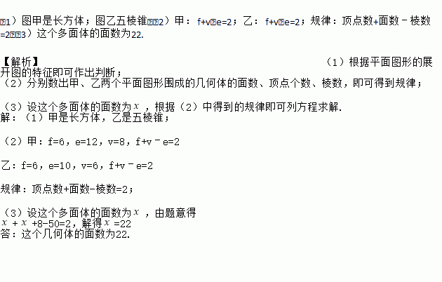 (3)应用上述规律解决问题:一个多面体的顶点数比面数大8,且有50条棱,求这个几何体的面数.