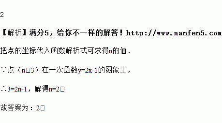 平面直角坐标系中,点(n,3)在一次函数y=2x﹣1的图象上,则n的值是_____.