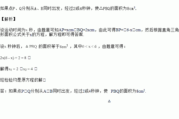 如图,在中,,点从点开始沿边向点以的速度移动,从点开始沿边向点以的速度移动,如果点、分别从、同时出发,几秒钟后,的面积等于?