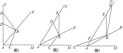 如果,将的两边射线BC和BA分别绕点B顺时针旋转,旋转后角的两边分别与射线AN交于点D和点E.