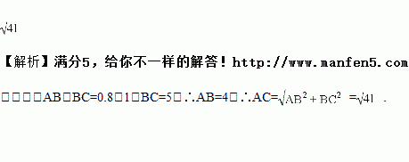 如图,斜坡AC的坡比为0.8:1,若BC=5,则斜坡AC=__________.
