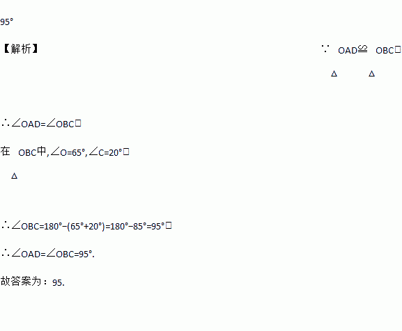 如图,若△OAD≌△OBC,且∠0 =65,∠C =20,则∠OAD= .