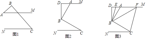 (3)如图3,在(2)问的条件下,点E、F在DM上,连接BE、BF、CF,BF平分∠DBC,BE平分∠ABD,若∠FCB+∠NCF=180°,∠BFC=3∠DBE,求∠EBC的度数.