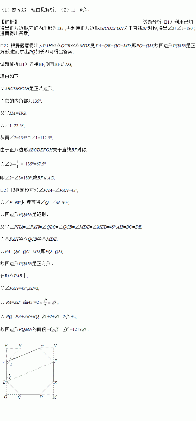 (2)两边延长AB、CD、EF、GH,使延长线分别交于点P、Q、M、N,若AB=2,求四边形PQMN的面积.